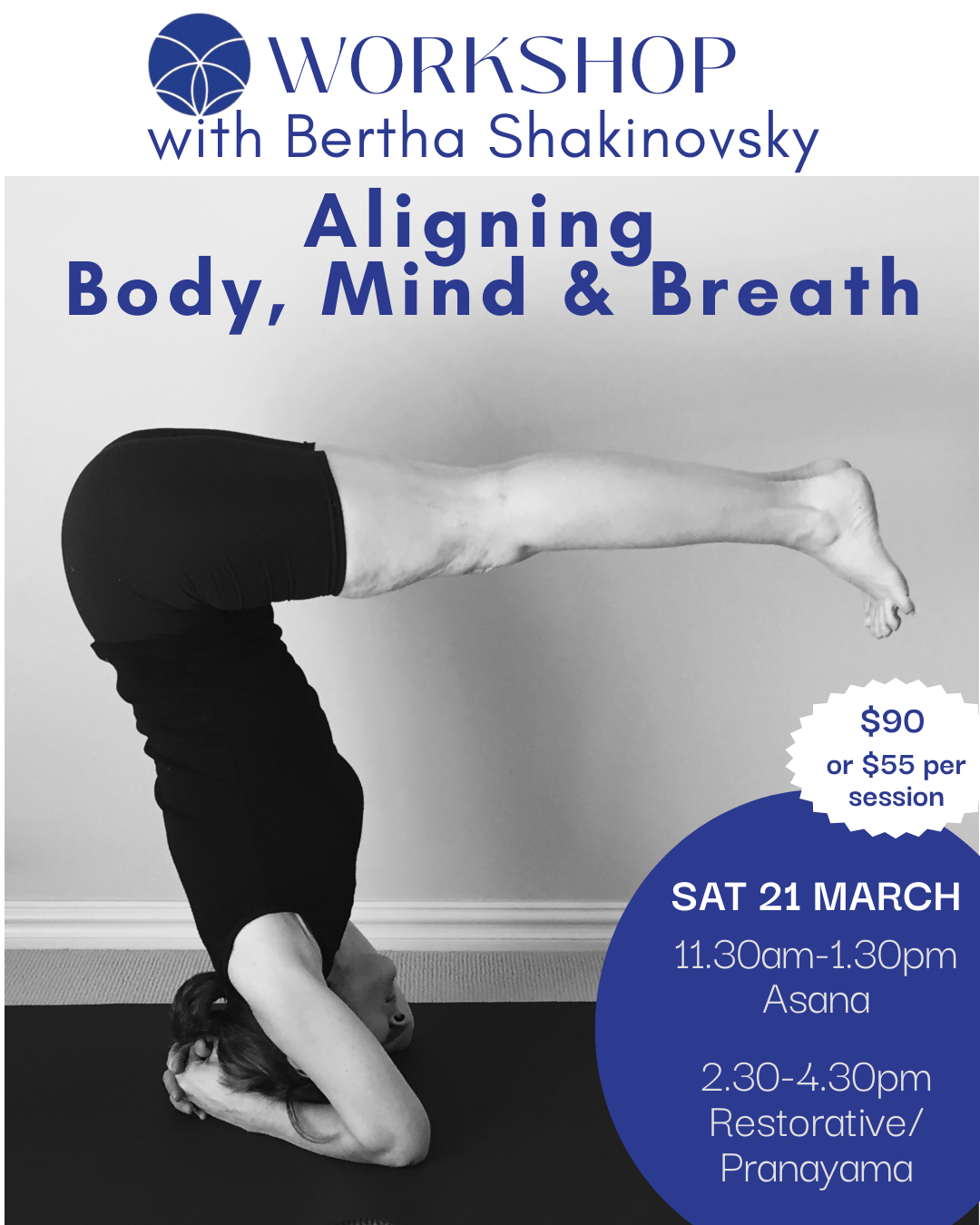 *Deepen your practice by attending the full workshop... or you're welcome to attend just one session on the day. $90 full workshop or $55 per session.