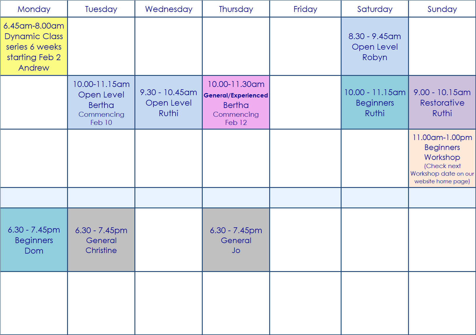 All classes can be booked through our KRIYA booking system. Prepaid pre-bookings only to attend our studio classes as we have a limit on how many students can attend.